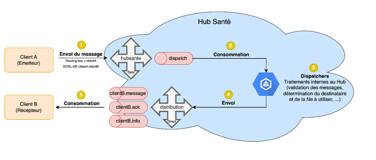 Grace à un mécanisme de routage interne au Hub Santé, chaque message publié sur